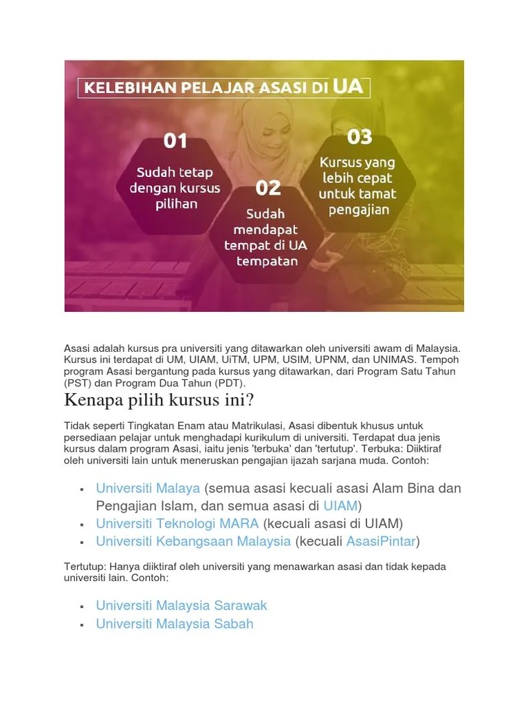 Sarjana muda muamalat (kepujian) ic220: Universiti darul iman malaysia (singkatan: Rules & regulations (asasi) postgraduate. Diploma pembangunan manusia (kampus bintulu, sarawak). Penubuhannya secara rasmi pada 15 … Matrikulasi kpm, asasi uitm & asasi sains um (l) diploma ipt lain (n) diploma / diploma lanjutan kemahiran malaysia (dl) diploma kolej vokasional (dv) diploma uitm (d).